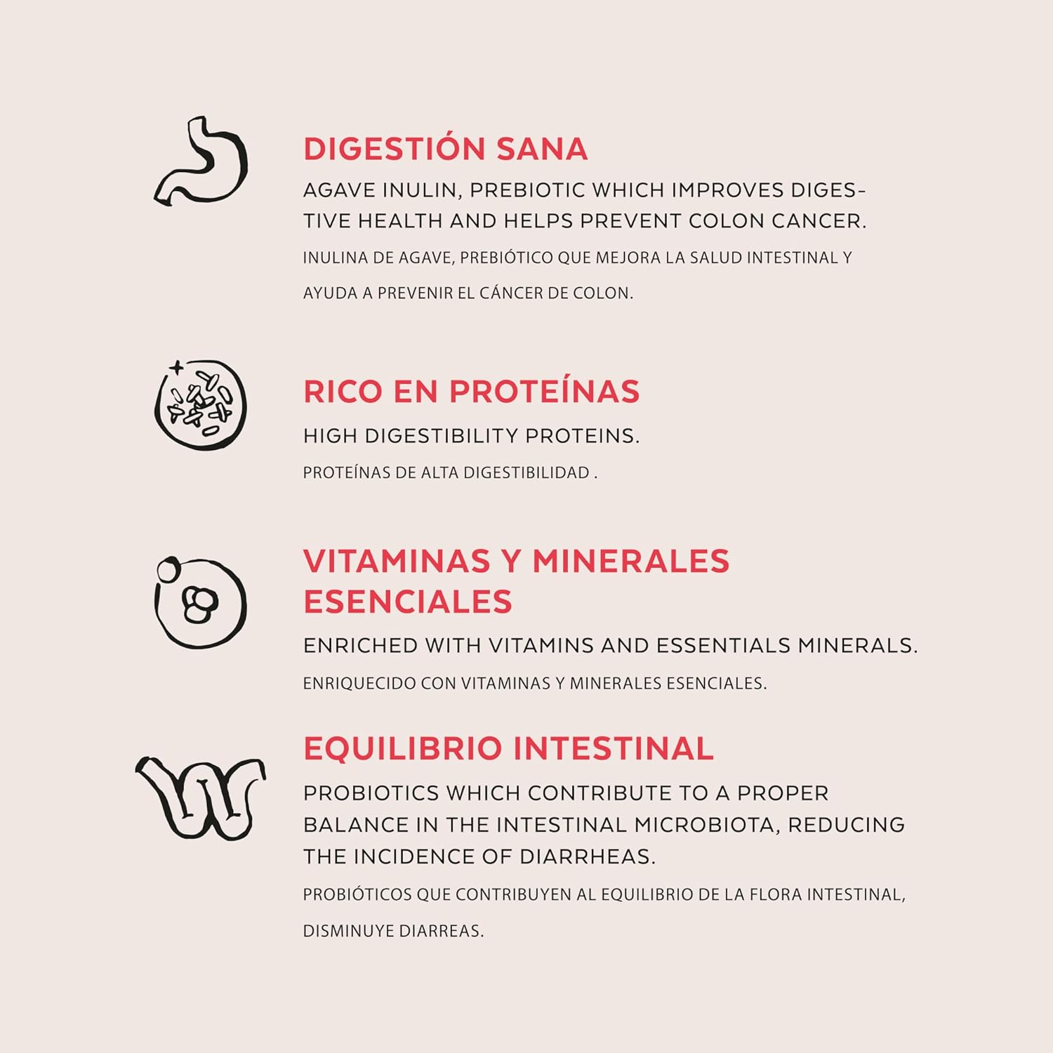Las Croquetas Noble Adultos incluyen inulina de agave, prebiótico que mejora la salud intestinal y probióticos que contribuyen al equilibrio de la microflora y previene las diarreas.