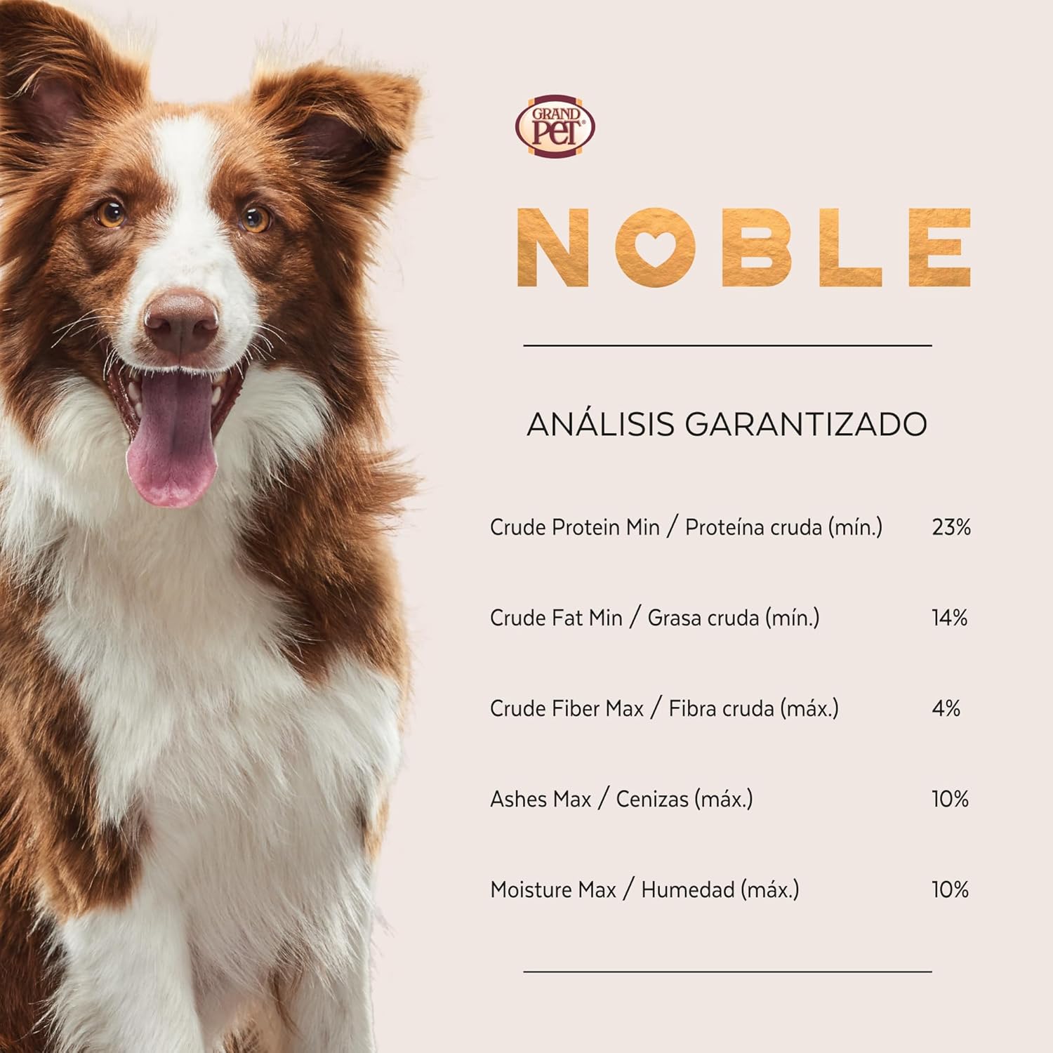 Croquetas Noble Adultos, un alimento premium para perros adultos con el que conseguirás una nutrición 100% completa y balanceada. Contiene proteínas de origen animal de alta digestibilidad y está enriquecido con vitaminas y minerales esenciales.